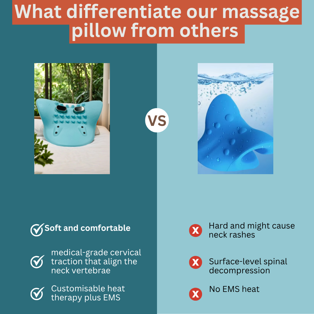 Our cervical traction and Neck massager also called a cervical massage pillow targets the same muscle and pressure points that a therapist would, helping to relieve stiffness, and melt away daily stress